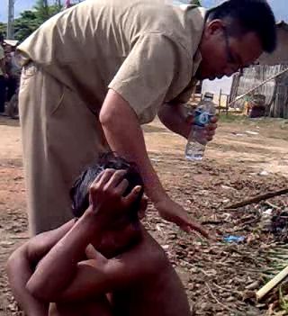 lalu dengan dibantu masyarakat. orang gila itu di gunduli kepalanya untuk saya bekam.